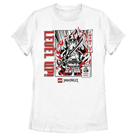 FIFTH SUN T Shirt Lego Ninjago Level Up Ninja Women's Short Sleeve Tee Shirt, white