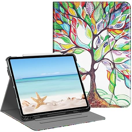 • Fintie (フィンティー) 二つ折りケース iPad Air 13インチ (M3) 2025 / (M2) 2024用 マルチアングルビュー保護スタンドカバー ペンシルホルダー&ポケット付き 自動スリープ/ウェイク ラブツリー