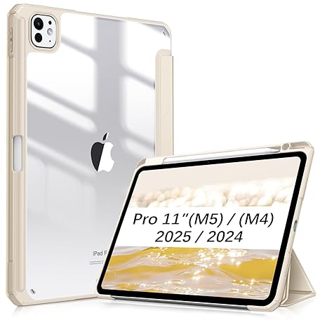 Fintie iPad Pro 11 Inch (M4) Case, 2024 Transparent Back Cover, Compatible with Apple Pencil Pro Wireless Charging, Trifold Stand, Sleep Function, Lightweight, Thin, Anti-Scratch, PU Synthetic