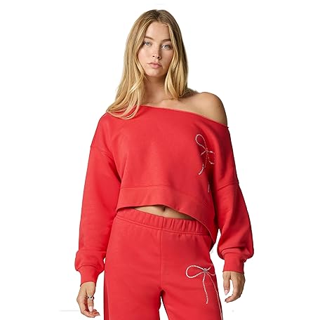 florence by mills Women's Cozy Crush Bedazzled Off-shoulder Pullover Sweater
