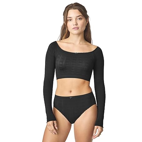 florence by mills Women's Seamless Pointelle Long Sleeve Crop Top