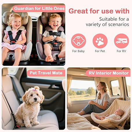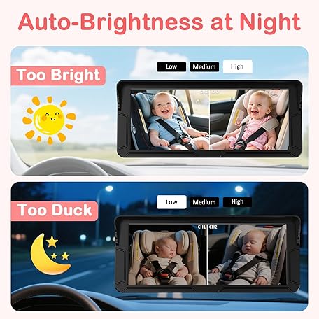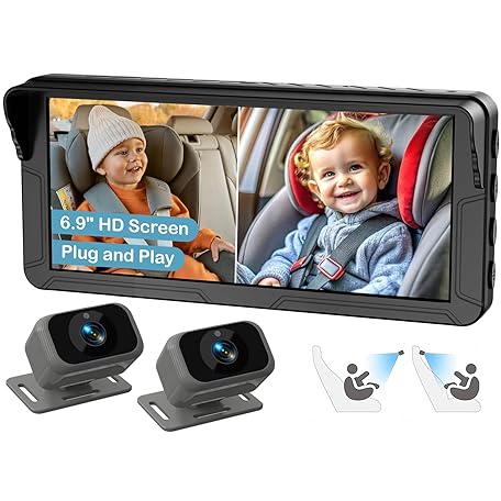 Fodkh Dual Stroller Camera for 2 Person - 6.9" Split Screen HD Display, Infrared Night Vision, Easy Installation, Rear Seat Camera for Toddler and Toddler Safety, Fits All Vehicles