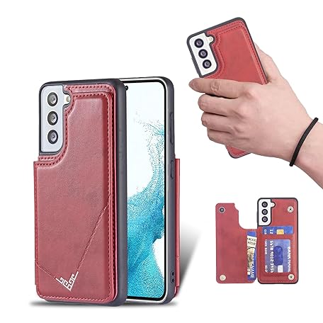 For Galaxy S21 5G SC-51B SCG09 Case, Stand Function, IC Card Storage, Card Storage, Simple Retro Fashion, Waterproof and Stain Resistant, Multi-functional Wallet Storage (Red)