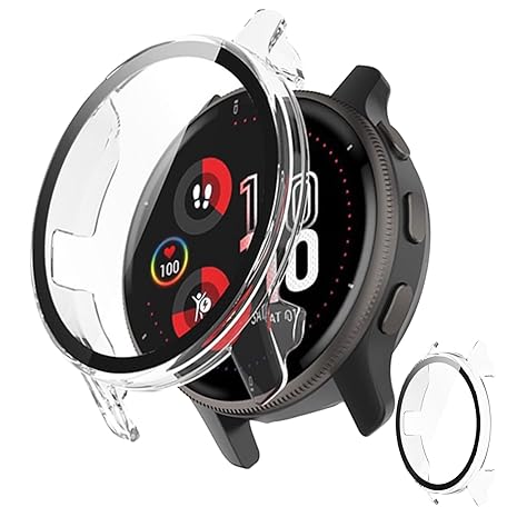 For Garmin Venu 2 Cover, Garmin Venu 2 Protective Case, Tempered Glass Film + Ultra Shockproof PC Frame, Reducing Reflection, Anti-Fingerprint, Lightweight Slim Design (Clear)