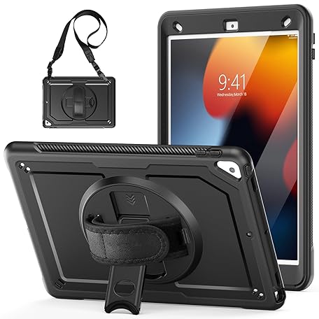 For iPad 7th/8/9th Generation (10.2") / iPad Air 3 (10.5") Case Cover - Pen Storage, 360 Degree Rotation, Hand & Shoulder Strap, Dustproof, Shockproof, Drop Proof, Kids Ring Handle, Stand Function