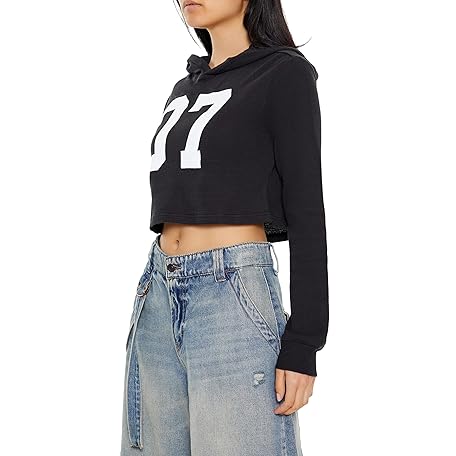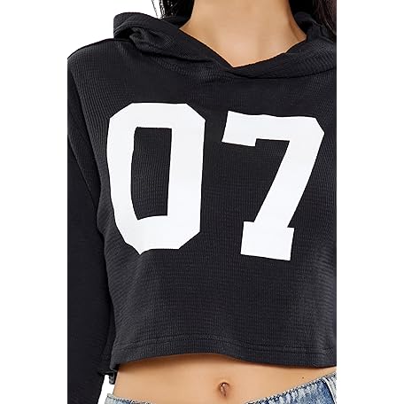 Forever 21 07 Graphic Cropped Hoodie Women's 07 Graphic Cropped Hoodie