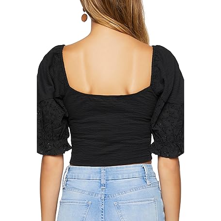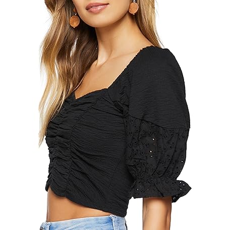 • Forever 21 レディース シャーリングアイレットクロップトップ