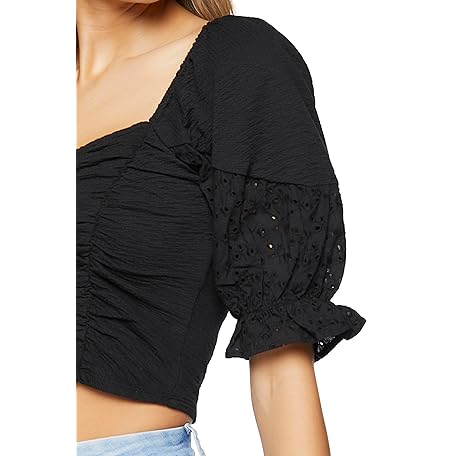 Forever 21 レディース シャーリングアイレットクロップトップ