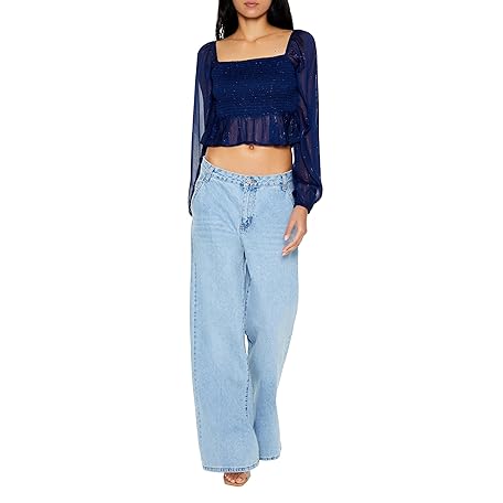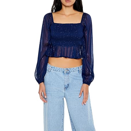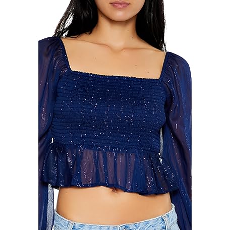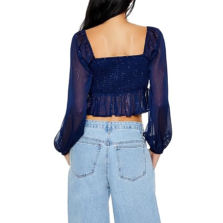 • Forever 21 レディース メタリック ペザントスリーブ クロップトップ