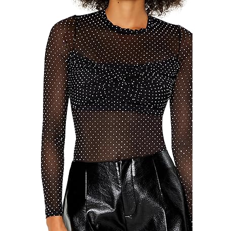 • Forever 21 レディース シアー メッシュ ラインストーン トップ