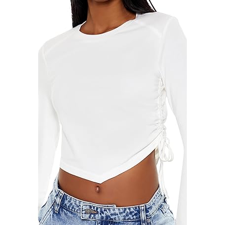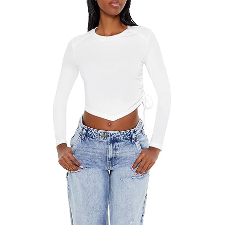 Forever 21 レディース シャーリングドローストリング クロップトップ