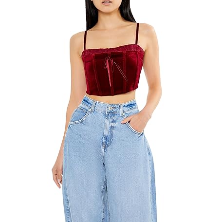 Forever 21 女性用ベルベットビスチェクロップドキャミ, レッド, Large