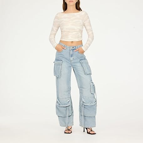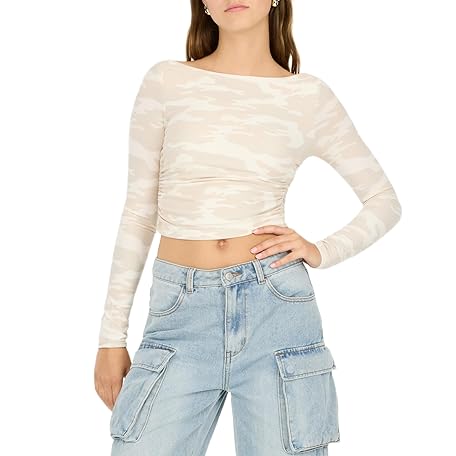 • [Forever 21] 長袖シャーリングクロップトップ-フィットストレッチシャツ Long Sleeve Ruched Crop Top-Fitted Stretch Shirt レディース