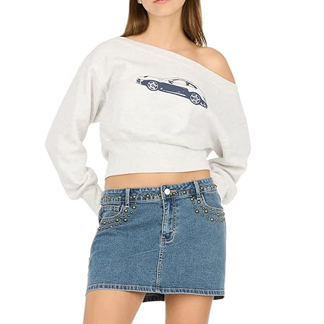 • Forever 21 Pullover Sweater Off-shoulder Fleece Sweatshirt - Crewneck With Graphic Print Womens