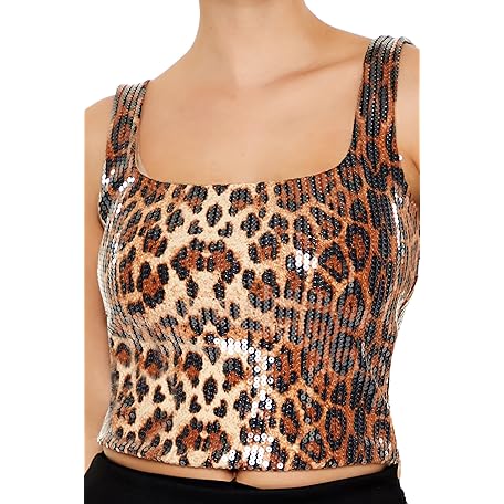 • Forever 21 Women's Sequin Leopard Print Tank Top