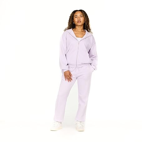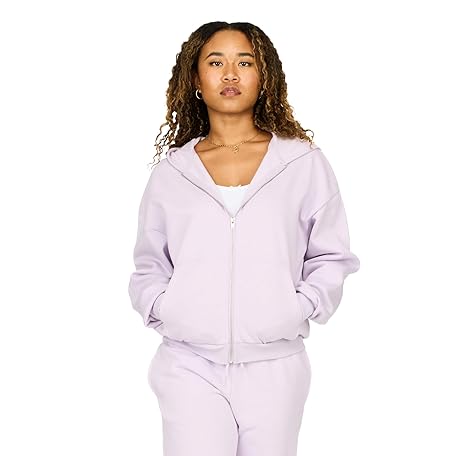 [Forever 21] レディース フルジップ フロント スウェットシャツ ドローストリング付き フード付き, パープル, X-Large