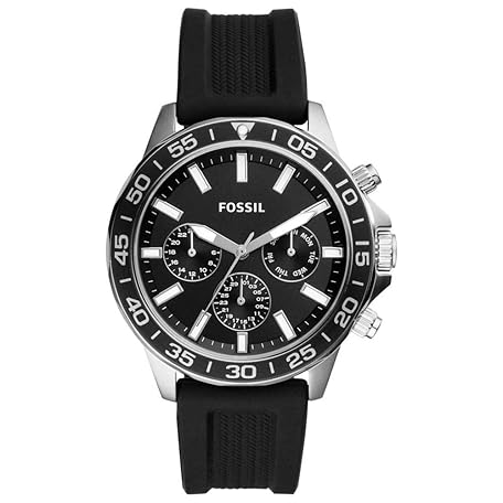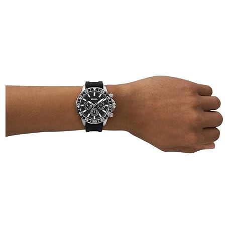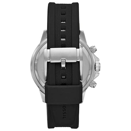Fossil Bannon Multifunction Black Silicone Watch, Steel Case