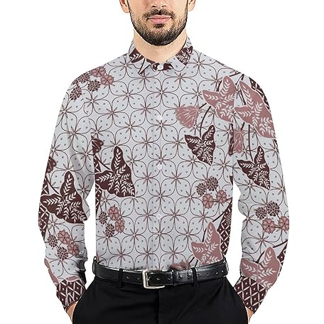 FoWintea Men's Retro Batik Indonesia Button-Down Dress Shirt, Business Top, Solid Color, Open Collar, Fashionable, Cool, Stylish, XL