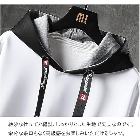 • [foxseon] 秋服 メンズ パーカー 七分袖 長袖 フード付き レイヤード 無地 シンプル おしゃれ 大きいサイズ カットソートップス フード付き ゆったり カジュアル プルオーバー