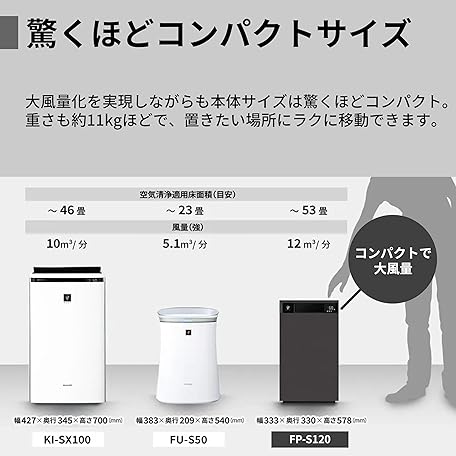 Sản phẩm シャープ 空気清浄機 FP-S120-T プラズマクラスター 25000 コンパクト 大風量 両面吸込み構造 空気清浄 53畳 店舗 オフィス đang được bán với giá ưu đãi là $437.6568 tại nước Nhật.