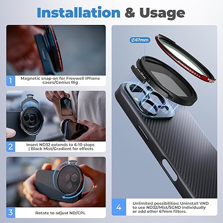 Freewell Pro Hybrid Magnetic Filter with 1-10 Stop Variable ND/CPL ND32, Soft Gradient 1.2, Black Glow Mist for Freewell iPhone Cases & Cages