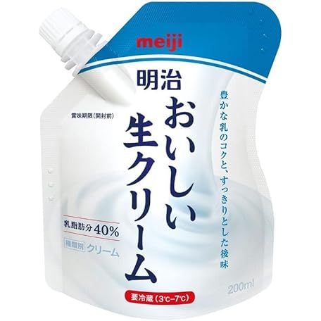 Fresh Cream, Delicious Fresh Cream, Meiji 7.8 fl oz (200 ml), Milk Fat 40% Whipped Cream, 6.8 fl oz (200 ml) x 6 Bags