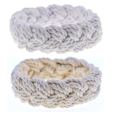 FROG SAC 2 Sailor Knot Bracelet, Nautical Knot Rope Bracelet, Natural & White Sailor Bracelet, Unisex Fisherman's Bracelet Set, Cotton Knot Bracelet, Rope Bracelet Jewelry, M, Cotton, No Gemstone