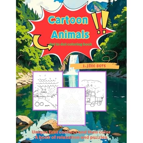 From Easy to Difficult Dot To Dot Coloring books for Adults Relaxation: 1-1000 Dots, 50 pictures, funny cartoons, chickens, bees, whales, owls, rabbits, deer, turtles, flowers, and other animals, plants, and buildings