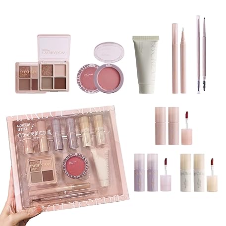 Full Beauty Makeup Cosmetics Set, 12 Pieces, Cosmetics Set, Eye Shadow Palette, Lipstick, Cheek Color, Cosmetics Set, Makeup Palette, Waterproof, Glossy, High Color, Regardless of Age or Gender,