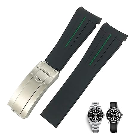 [FULNES] 20 ミリメートル 21 ミリメートル湾曲端ゴムシリコーン時計バンドロレックスサブマリーナー 20 ミリメートル GMT ヨットマスターデイトナ深海ソフトストラップ(Black Green,21mm)