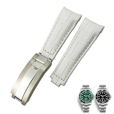 [FULNES] 20mm Curved End Watch Band Leather Strap for Rolex 116610 Submariner Oyster GMT Daytona Slide Lock Buckle Cowhide Bracelet, agate