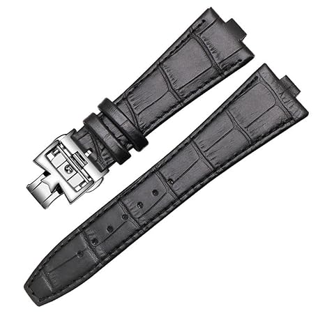 • [FULNES] 本革ストラップは、ヴァシュロン・コンスタンタン OVERSEAS シリーズ 4500V 5500V P47040 ステンレス スチール バックルに適しています。(A-Black Silver)