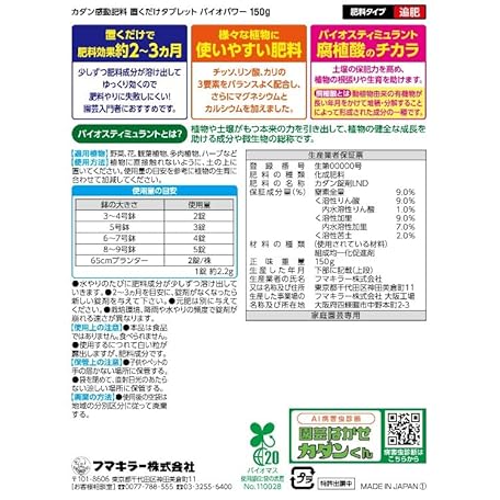 Thông tin sản phẩm Fumakilla Fertilizer, Kadan Touching Fertilizer, Just Place Tablet, Bio Power, 5.3 oz (150 g), Promotes Root Tension, Soil Creation