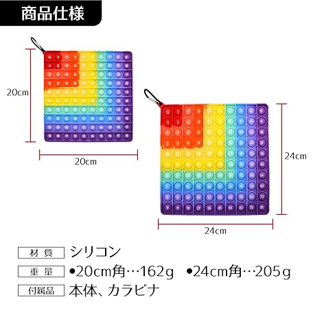 Thông tin sản phẩm Funriche Push-Pop, Educational Toy, Math, Math, Front and Back, Finger Training, Infinite Bubble Petit, Squishy Toy, Pop-it (Multiplication & Addition), 7.9 inches (20 cm) Right Angle Rainbow