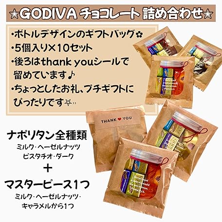 G ODIVA ゴディバ【プチギフト】5個入り×10セット THANK YOUシール付き ナポリタン マスターピース ボトルデザイン バレンタイン ホワイトデー イベント お礼 お配り用お菓子 チョコレート 小分け