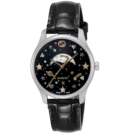GUCCI(グッチ) G-TIMELESS G Timeless Black Dial Stainless Steel Sapphire Glass Quartz 8p Diamond 38MM Swiss Watch YA1264091 Women's, Black