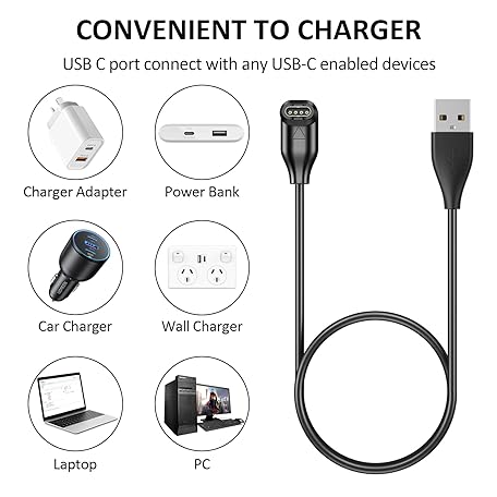 • Garmin Charge Cable Right Angle 1M Fenix 7 6 5 S X Plus, Vivoactive 3 4 5, Venu Sq Music 2 3 Plus, Forerunner 945 935 645 245 165 55, Instinct, Approach S62 S60 S10 S40 X10, QuQu. atix 6 5 USB-C