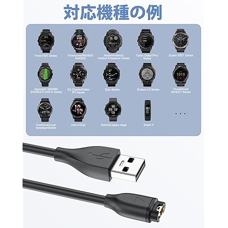 • Garmin Compatible Charging Cable USB Charging Cable 3.3 ft (1m) Compatible with Garmin Watch Fenix 7 7S 7X 6 6S 6X 5 5S Forerunner 245 945 Instinct 2 2S Vivoactive 4 4S 3 Vivosmart 5 [Charger