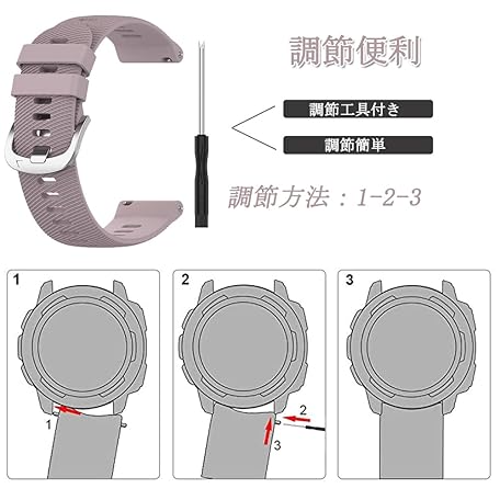 Thông tin sản phẩm 対応Garmin Forerunner 255S/255S music/Venu 2S/vivoactive 4S バンド 18mmベルト対応 通気性ベルト 柔軟なシリコン 簡単取付 調節可能 軽量 Huawei Honor S1 男女通用 耐久性 防水防汗(ライトピンク+パープル+ライトグレー)