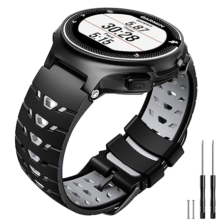 Garmin Forerunner 630/235/620/735XT/220/230/Approach S20/S6/S5用 ツーインワン カラー ソフトシリコーン 腕時計バンド 交換用 ブラック - グレー