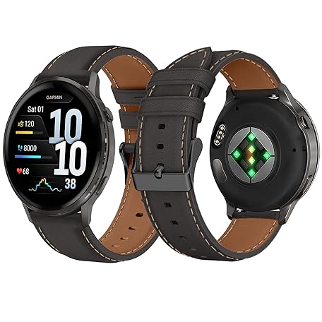 • Garmin Venu 4 45m / Venu 3 45mm/Venu 2用レザーウォッチバンド 22mm ソフトPUレザーブレスレットリストバンド 交換用ストラップ Garmin Forerunner 265S/255S/255S Music/Vivoactive 4S/Active用 - ブラック
