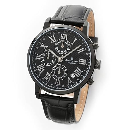 Genuine SalvatoreMarra Wristwatch, SM22103-BKBK Waterproof for Daily Use, Date Display, Leather Strap, BKBK, Modern