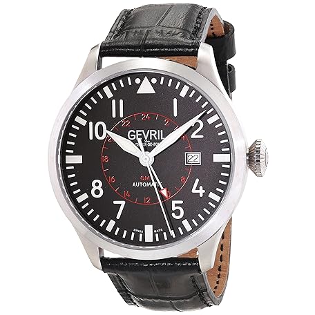 Gevril 44503-05 Men's Vaun Swiss Automatic Watch Made in Italy with Black Leather Strap