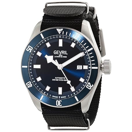 • Gevril 48601N メンズ Yorkville Swiss 自動巻き腕時計、タングバックル付きキャンバスストラップ
