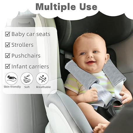 • GFU ベビー用カーシートストラップパッド、快適なソフトショルダーパッド、子供用リバーシブルシートベルトカバー、ベビーカーシート、ベビーカー、ブランコ、ハイチェアに最適、サイズ:16.5 x 16.5 cm、グレー