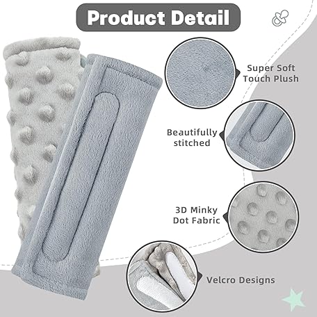 Thông tin sản phẩm GFU ベビー用カーシートストラップパッド、快適なソフトショルダーパッド、子供用リバーシブルシートベルトカバー、ベビーカーシート、ベビーカー、ブランコ、ハイチェアに最適、サイズ:16.5 x 16.5 cm、グレー