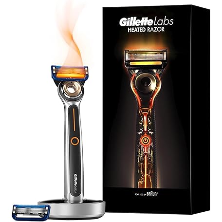 Gillette Labs Heated Laser Electric Shaver Body with 2 Replacement Blades and 1 Magnetic Charging Dog Heated Razor Thermal Shaver Rechargeable Waterproof 5-Blade Razor Razor for Men