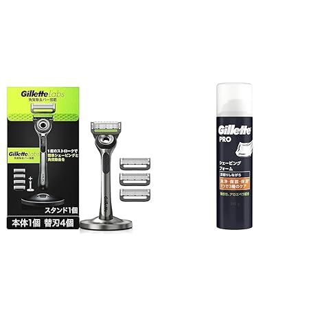 • Gillette Razor, Shaving, Exfoliating with Stand, 4 Replacement Blades, Lab (Amazon.co.jp Exclusive) + Gillette PRO (Pro) Shaving Foam, 8.6 oz (245 g), Instantly Changes to Fluffy Foam, 3 Types of