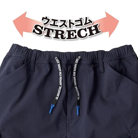 • Gladiator Casual Pants, Cool Stretch, Light Short, Cargo, Ultra Stretch Material, Elastic Waist, navy