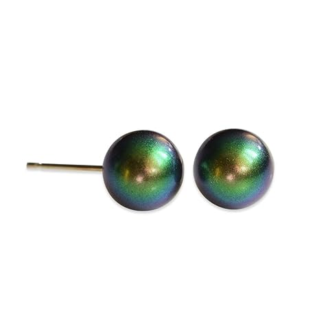 Glass Pearl Earrings, 10K Gold, 10k Swarovski Pearl, Pearl Earrings, Stud Earrings, K10, For Both Ears, Women's, Birthday Gift, Wife, Mother, Metal Allergy, Safe, Bridal Wedding, Invitations, Akoya